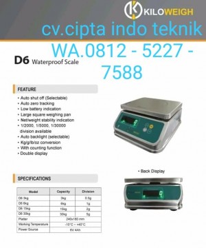 Spesifikasi TIMBANGAN MEJA WATER PROOF KILOWEIGH TYPE D6 - 30 KG