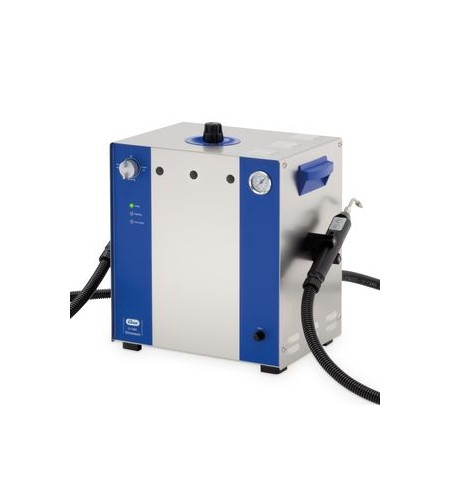 Equipped with 8 bar working pressure and 3 litres filling volume, the Elmasteam is prepared for many different cleaning tasks in industry, jewellery workshops or in dental laboratories. The steam can be produced from city water or distilled water. Due to the high heat output of the machine, a constant steam supply with minimal pressure loss is ensured, even in continuous operation.