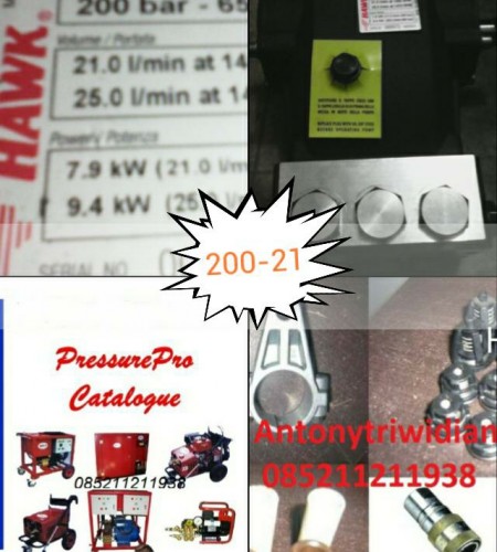 - Kinerja: 200 Bar / 2.900 Psi, 21 liter per menit