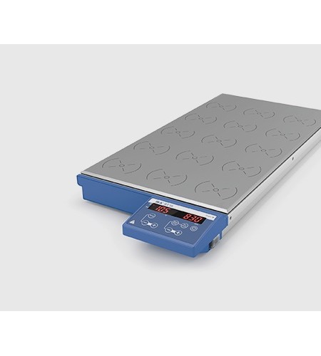 coil technology provides noiseless and consistent stirring on all positions. The surface temperature is infinitely adjustable up to 120 °C, producing a maximum medium temperature of 70 °C (depending on the used vessel). Speed remains constant, even when load changes.