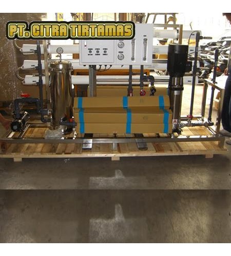 Mesin RO Industri adalah mesin reverse osmosis yang dirangkai dalam satu rangka yang digunakan untuk skala industri atau besar. Mesin Reverse Osmosis Industri ini terdiri dari beberapa part diantaranya membrane system, sediment filter, pompa dan panel kontrol. Untuk menjaga kinerja Industrial RO Machine ini, maka idealnya adalah dilakukan pre-treatment terlebih dahulu sebelum masuk ke Industrial Reverse Osmosis Machine seperti sand filter, carbon filter atau water softener, untuk menurunkan kadar kimia pada air sumber yang akan dipakai, terutama kadar besi (Fe), kadar mangan (Mn) atapun kadar Kapur (CaCo3) serta kandungan kimia lainnya yang akan merusak membrane pada Mesin RO Industri. PT Citra Tirtamas menjual Mesin Reverse Osmosis Industri mulai dari kapasitas 12000 gpd sampai dengan 48000 gpd, dengan harga yang kompetitif.