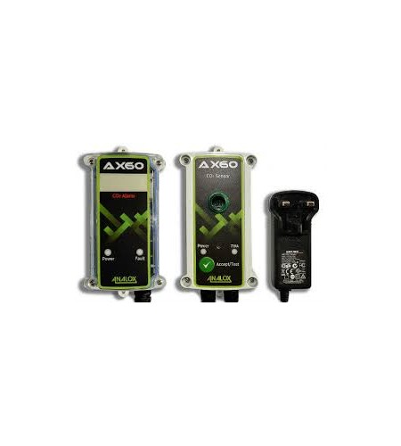 The Ax60K sensor needs to be installed around 450mm above the floor - this is because CO2 is heavier than air and can collect at low levels. The alarm should be located above the sensor at about head height (between 1800mm and 1950mm) or at the entrance to the kiosk.