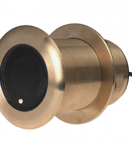 A tilted element model in the CHIRP Thru-Hull product line, the B75M CHIRPS across the following bandwidth: