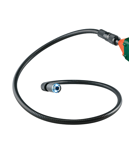 - 39" (1m) flexible gooseneck with waterproof camera (17mm diameter) and 2 built-in bright LED lights for illuminating dark areas