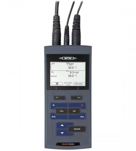 Simultaneous measurement, display and storing of up to two parameters – the Multi 3320 for the measurement of pH, ORP, conductivity and dissolved oxygen (electro-chemical). It is an ideal meter for environmental applications in the areas of ground and surface water measurement, in aquatic cultures as well as in wastewater treatment plants and much more. All conventional WTW pH electrodes, combined ISE electrodes, conductivity measuring cells and galvanic oxygen sensors can be connected to the meter.