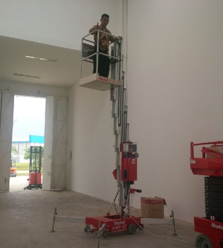 Harga Jual Aerial Work Platforms 10m Mantall AMP26 dan 12m Mantall AMP32 dengan kapasitas 159kg. Harga yang ditawarkan HKA kompetitif/murah dan memberikan gratis ongkos kirim untuk area Jakarta, Tangerang, Serpong, Bekasi, Semarang dan Surabaya
