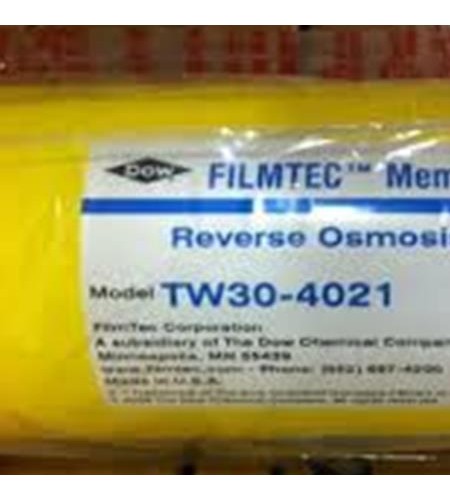 Membrane RO Filmtec TW30-4021 adalah jenis Membrane RO untuk kapasitas 900 gpd serta memiliki diameter 4 inch dan panjang 21 inch. Membrane Reverse Osmosis Filmtec TW30-4021 ini dapat digunakan pada aplikasi reverse osmosis yang sumber air bakunya berasal dari air tanah, air sumur atau air pdam. Filmtec TW30-4021 merupakan jenis membrane kualitas tinggi dari bahan Polyamide Thin-Film Composite serta memiliki outershell yang keras, dan lebih ekonomis untuk sistem komersial dengan satu atau dua elemen per housing yang memiliki diameter 4 inch. Keunggulan dari Membrane TW30-4021 ini adalah dapat menghilangkan kontaminan kimia, mengurangi volume air limbah, hasil fluks yang tinggi, tahan lama dengan cleanability yang baik sehingga umur pemakaian yang lama.