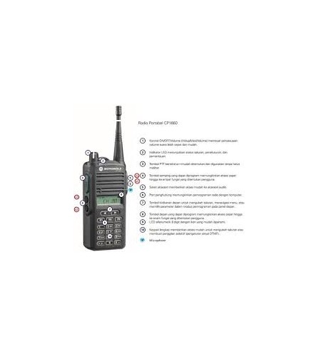• Motorola CP1660 punya spesifikasi yang lengkap memberikan peningkatan penolakan gangguan sehingga Anda bisa mendapatkan pesan Anda secara jelas.