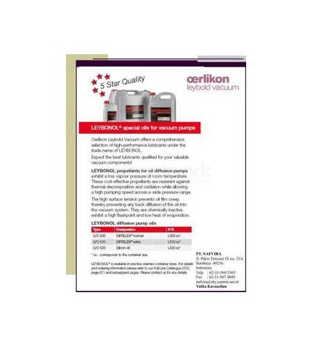 Spewsial Oli untuk Diffusion Pump " Leybonol" . Ada beberapa type diantaranya LVO 500, LVO 510, LVO 520, DC 704PT. NAFVIRA Jakarta Tangerang Bekasi Karawang Banten Cikarang Jababeka Surabaya Batam