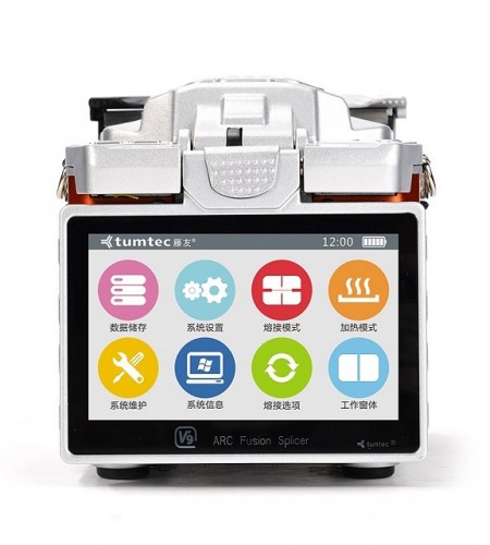 Tumtec Fusion Splicer V9 is one of the most powerful and intelligent fusion splicing machines and adopts core alignment technology. It has industrial-level Quad-core CPU( Mainly 1.4 GHz ), featuring low power cost and high performances, equipping with 5” High-Resolution color LCD touch screen for easy operations, achieving industry’s magnification of 500X so that fiber conditions can be easily inspected with unaided eyes. It also provides high capacity battery of 10200mAH for working even further in the field, which is typical 340 splicing/heating cycles. Innovative technology brings unlimited convenience. With its excellent and stable performances, V9 has become one of the most reliable and effective fusion splicer in global market.
