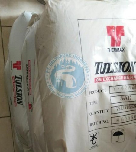 Resin Tulsion T-42 Na adalah adalah jenis resin kation asam kuat yang memiliki kualitas premium dan mengandung gugus asam sulfonat. Tulsion T-42 Na memiliki kapasitas tukar yang sangat baik dan stabilitas operasi kimia yang stabil. Resin Kation Tulsion T-42 Na keluaran dari Thermax-India dapat digunakan untuk aplikasi Water Softener, pada berbagai kondisi suhu dan pH. Thermax Tulsion T-42 Na dikemas dalam plastik bag kapasitas 25 liter.