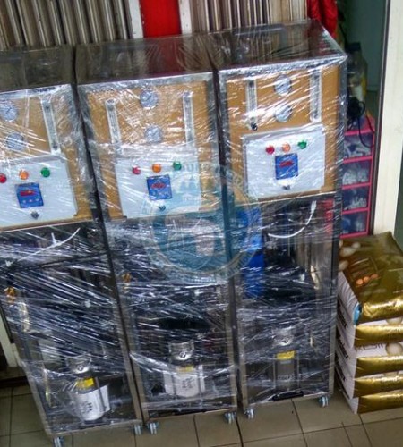 Mesin RO 4000 Gpd adalah metode penyaringan yang menggunakan sistem reverse osmosis untuk kapasitas 4000 Gpd atau 632 liter/jam. Mesin Reverse Osmosis 4000 Gpd ini dirangkai dalam satu frame berbahan material stainless steel sehingga sangat praktis digunakannya yang terdiri dari beberapa part yaitu membrane system, sediment filter, pressure pump, dan panel control.