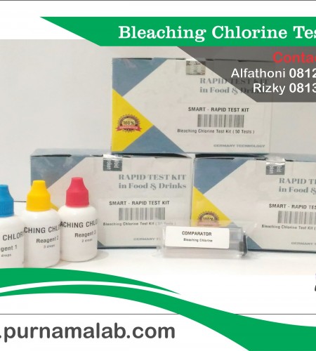 Bleaching Chlorine Test Kit Bleaching Choline test kit adalah test kit yang digunakan untuk mendeteksi adanya penambahan atau treatment pangan dan makanan dengan bahan pemutih group chlorine. Test kit ini mampu mendeteksi kadar chlorine dengan limit deteksi 0,5 ppm (mg/L) dan digunakan untuk sampel beras, baso ikan, mie, dan produk olahan lainnya. Pengujian menggunakan alat rapid test kit tidak membutuhkan kemampuan laboratorium khusus, menghemat waktu dan biaya. Waktu analisa yang diperlukan sekitar 3 – 5 menit.. Reagent disimpan pada suhu ruang, hindarkan paparan cahaya secara langsung serta masa simpannya selama 2 tahun. Kelebihan :
