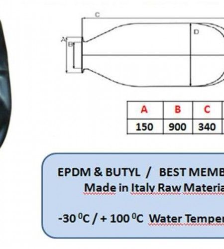Karet Membrane Pressure Tank 200 Liter ini digunakan untuk pergantian membrane pada pressure tank kapasitas 200 liter. Membrane Pressure Tank 200 Liter ini memiliki diameter 150mm pada bagian bawah (connecting) dan hanya cocok digunakan untuk Pressure Tank merk Aquasystem-Italy, kapasitas 200 liter. Rubber Membrane Pressure Tank 200 Liter ini terbuat dari EPDM dan memiliki panjang keseluruhan 900mm.