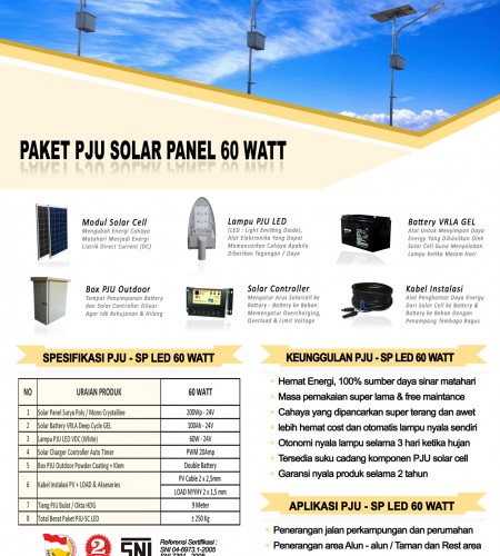 Spesifikasi paket PJU solar panel 60 watt LED