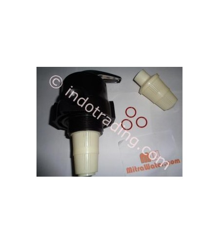 Jual Kepala Frp 3 Way Valve, Lengkap Dengan Strainer Atas, Strainer Bawah Dan Karet Seal. Hubungi: Mitra Water 081234590404Kepala Frp 3 Way Valve Ini Berfungsi Sebagai Sirkulasi Air Untuk Filter Frp. Kepala Frp Mempunyai 3 Lubang Yaitu Lubang Input (Ukuran 1") Untuk Sirkulasi Air Masuk, Lubang Output (Ukuran 1") Untuk Sirkulasi Air Hasil Dan Lubang Pembuangan (Ukuran 1") Untuk Sirkulasi Air Pembuangan Saat Dilakukan Backwash. Kepala Frp Ini Mempunyai 3 Posisi Yaitu :