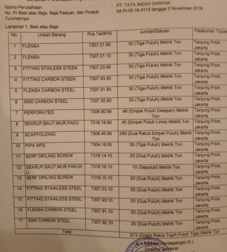 Spesifikasi JASA UNDERNAME IMPORT PI BESI BAJA | PT.TATA INDAH SARANA