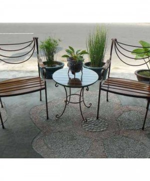 Bahan besi dudukan dari kayu Panjang / lebar kursi kurang lebih 50cm Diameter meja kurang lebih 50 - 55cm Meja ada kacanya