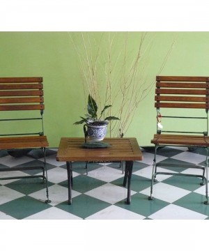 Bahan Besi, sandaran dan dudukan dari kayu Panjang / Lebar Kursi kurang lebih 50cm Ukuran Meja 60 x 45cm