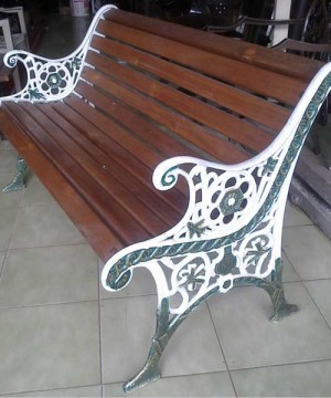 Bahan Cor Alumunium, sandaran dan dudukan dari kayu Panjang kursi kurang lebih 120cm