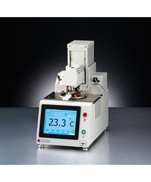 - Fire Suppression System floods instrument with inert gas in the event of a fireThe Automated Pensky-Martens Flash Point Analyzer represents a perfect union of next-generation technology with traditional robust quality. The system software runs on an integrated processor PC running the latest Windows operating system. The 8.4” touch screen interface fully displays all operator parameters and results on a single screen. A three (3) position mechanical lift system for the cover and motor assembly is fully automated and software selectable: Open – Clean – Test for one touch positioning of the test cup. Comes standard with two flash detector systems including a thermocouple and ionization ring detection. Over 65,000 results of data can be stored on the local hard drive. Integrated Dual Fan System directly cools the test cup and the environment around test cup. Unlimited number of user programs including a quick test that safely tests from ambient, puts the flash point result into the EFP of the official run, and prompts user to refresh the sample, virtually assuring no fires ever occur. In addition, the instrument comes standard with an inert gas fire suppression system