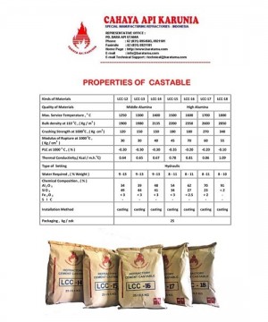 Menjual SEMEN COR TAHAN API Castable LCC-14 hingga LCC-18 , LWCC 9 hingga 13 dan RC-2