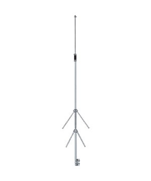 2 Meter vertical with 3 dBd gain derived from the famous extended double zepp antenna design. Radiating elements are two collinear 5/ 8 waves fed in phase. 2 sets of 1/ 4 wave radials properly decouple lower radiator from the mast. The SO-239, handles 500 Watts. 9 feet.