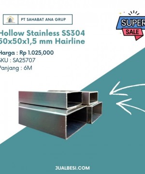 Spesifikasi Hollow Stainless SS304 50x50x1,5 mm Hairline