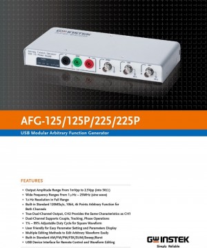 · Built-in AM/FM/PM/FSK/SUM(AFG-225/225P) modulation, sweep and burst functions