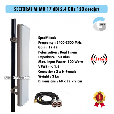 Spesifikasi antena Gnet Sectoral MIMO 17 dBi 2,4 GHz 120 derajat
