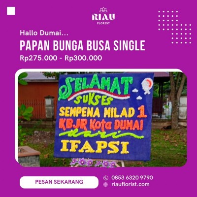 Riau Florist siap sedia melayani pemesanan sewa papan bunga di Dumai untuk berbagai acara seperti acara wedding pernikahan, khitanan, duka cita, grand opening, soft opening, wisuda kelulusan, peresmian, serah terima jabatan, pertunangan, ucapan selamat pelantikan, hari besar, dan lainnya.