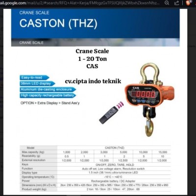 Spesifikasi TIMBANGAN GANTUNG 10 TON CASTON THZ MERK CAS
