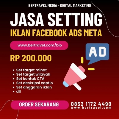 Hubungi kami 085211724490 (Bertravel Media). Solusi Jasa Setting Iklan Facebook Ads meta dengan Biaya Terjangkau.