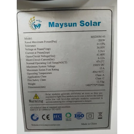 Spesifikasi Solar Panel Maysun 200wp Mono Solar Cell Panel Surya Pembangkit Tenaga Surya