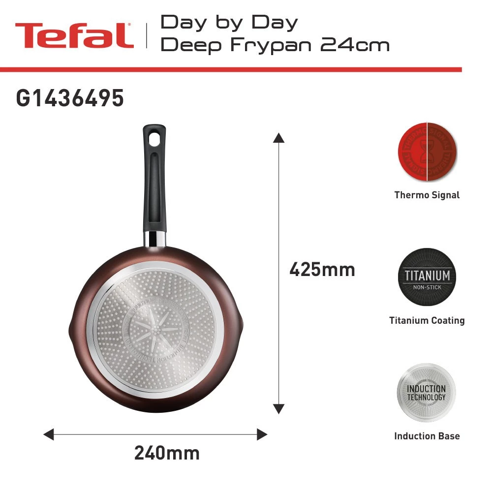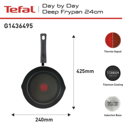 Spesifikasi Tefal Day by Day Deep Frypan Series 24 / 28 CM - Wajan Induksi Anti Lengket Bisa di Semua Kompor / Penggorengan Garansi 1 Tahun