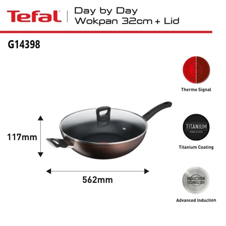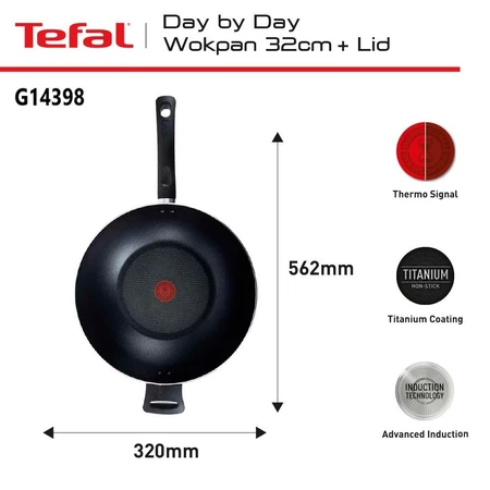 Tefal Day by Day Wokpan 32 CM + LID - Wajan Induksi Anti Lengket Bisa di Semua Kompor / Penggorengan Garansi 1 Tahun