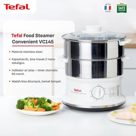 Spesifikasi Tefal Food Steamer Stainless 6 L VC145 / Kukusan Elektrik