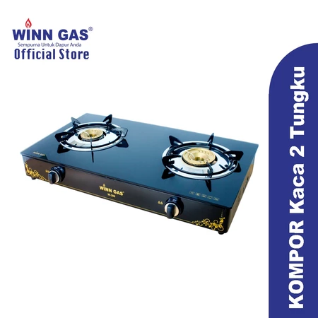 Winn Gas W399 Kompor Gas 2 Tungku Glass memiliki bodi anti lengket dan mempunyai tungku dengan 4 sudut penyangga. Material plat anti karat, knob dan pematik otomatis, burner cap kuningan. Gas bertekanan rendah.
