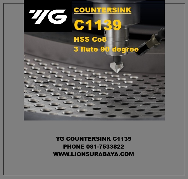 C1139 dari merk YG-1 Korea adalah seri alat potong jenis Countersink (pahat sudut/penghalus lubang) yang memiliki spesifikasi utama sebagai berikut: