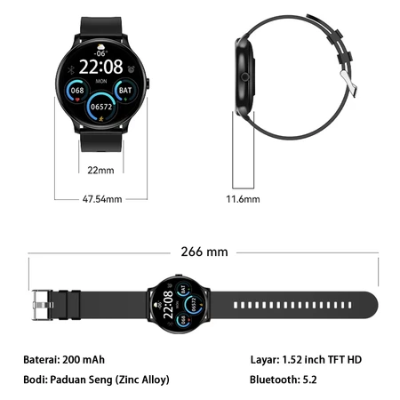 Watch strap:47.5mm Desain ergonomis yang sesuai dengan ukuran pergelangan tangan masyarakat Asia Tenggara.