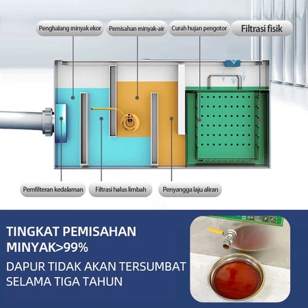 Grease Trap Stainless Steel Filter Penyaring Lemak Dapur Saringan Lemak Minyak Limbah Cuci Piring 4 Lapisan Penyaringan