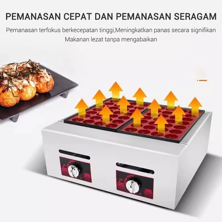 Spesifikasi Mesin takoyaki cetakan takoyaki anti lengket Kompor Takoyaki Gas 56 Lubang Kompor takoyaki dan cetakan Mesin Takoyaki Gas Papan
