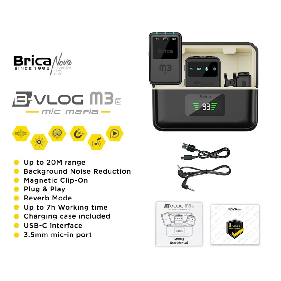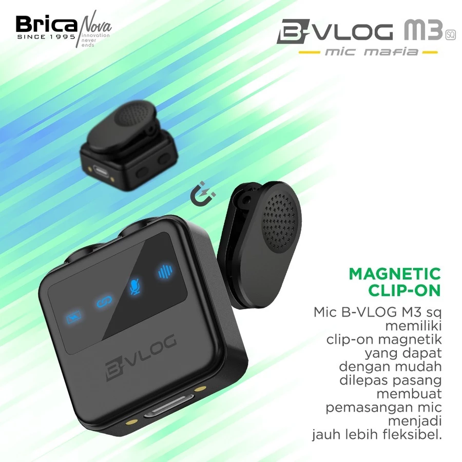 Spesifikasi Brica B-VLOG M3 SQ - Dual Magnetic Clip Wireless Microphone - Clip On Mic Vlog - With Charging Case BVLOG - Bonus T-Shirt Brica Store