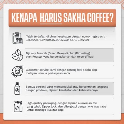 Sakha Coffee Official Shop menyajikan Biji Kopi Khusus Nikmat Berkualitas dan Beraroma rasa, terjamin dan bersertifikat Mutu dan Halal.