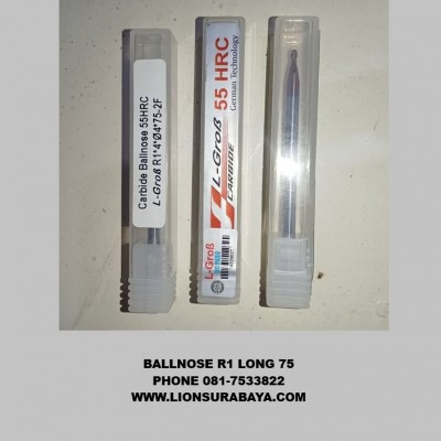 Ballnose L-Grob dengan spesifikasi diameter 2mm (Radius 1mm), 2 flute, panjang 75mm, dan kekerasan HRC55 tersedia di pasar Indonesia dengan detail teknis berikut: