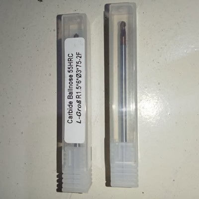 jual Ballnose 2 flute diameter 3mm radius 1.5mm long 75mm HRC55 Merk L-grob