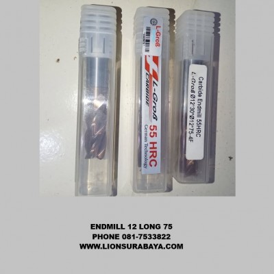 Endmill Carbide merk L-Grob dengan diameter 12mm, panjang 75mm, dan kekerasan HRC55 tersedia di Indonesia melalui distributor resmi dan beberapa platform e-commerce.