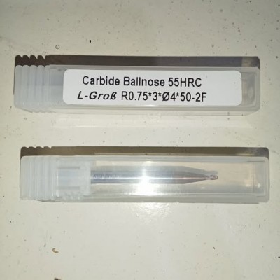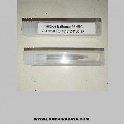 Jual Carbide ballnose 2 flute diameter 1.5mm radius 0.75mm Long 50mm HRC55 Merk L-grob