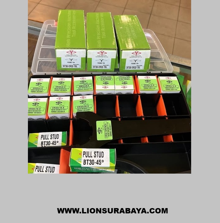 Pastikan untuk memeriksa ketersediaan Pull Stud BT30 dan kunci pengencang (Wrench ER32) karena biasanya dijual secara terpisah
