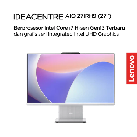 Lenovo PC IdeaCentre AIO 27IRH9 (Intel Core i7 13620H, Win11 Home, 16GB DDR5-5200, 512GB SSD, 27" FHD IPS 300nits 100Hz 99% sRGB, Integrated Intel UHD, 3Y Premium Care, Tanpa DVD RW, WiFi 6) + Wireless Keyboard & Mouse + OHS 2021 + Packing Kayu (kecuali Instant)